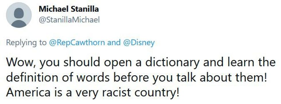 Cawthorn, a man who had "visiting Hitler's vacation home" on his bucket list and uses such blatant racist dog whistles it's just viewed as racism at this point, was not at all a fan of Disney's new initiative.