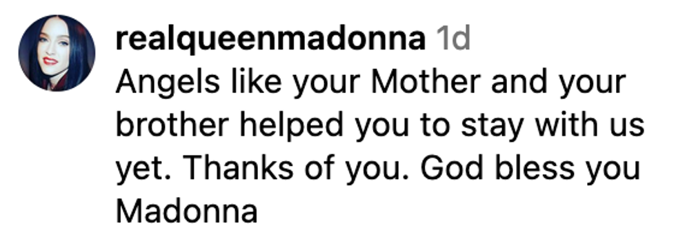 Madonna closed her post by thanking her longtime manager Guy Oseary for the Warhol art and to "all my angels who protected me and let me stay to finish doing my work!"