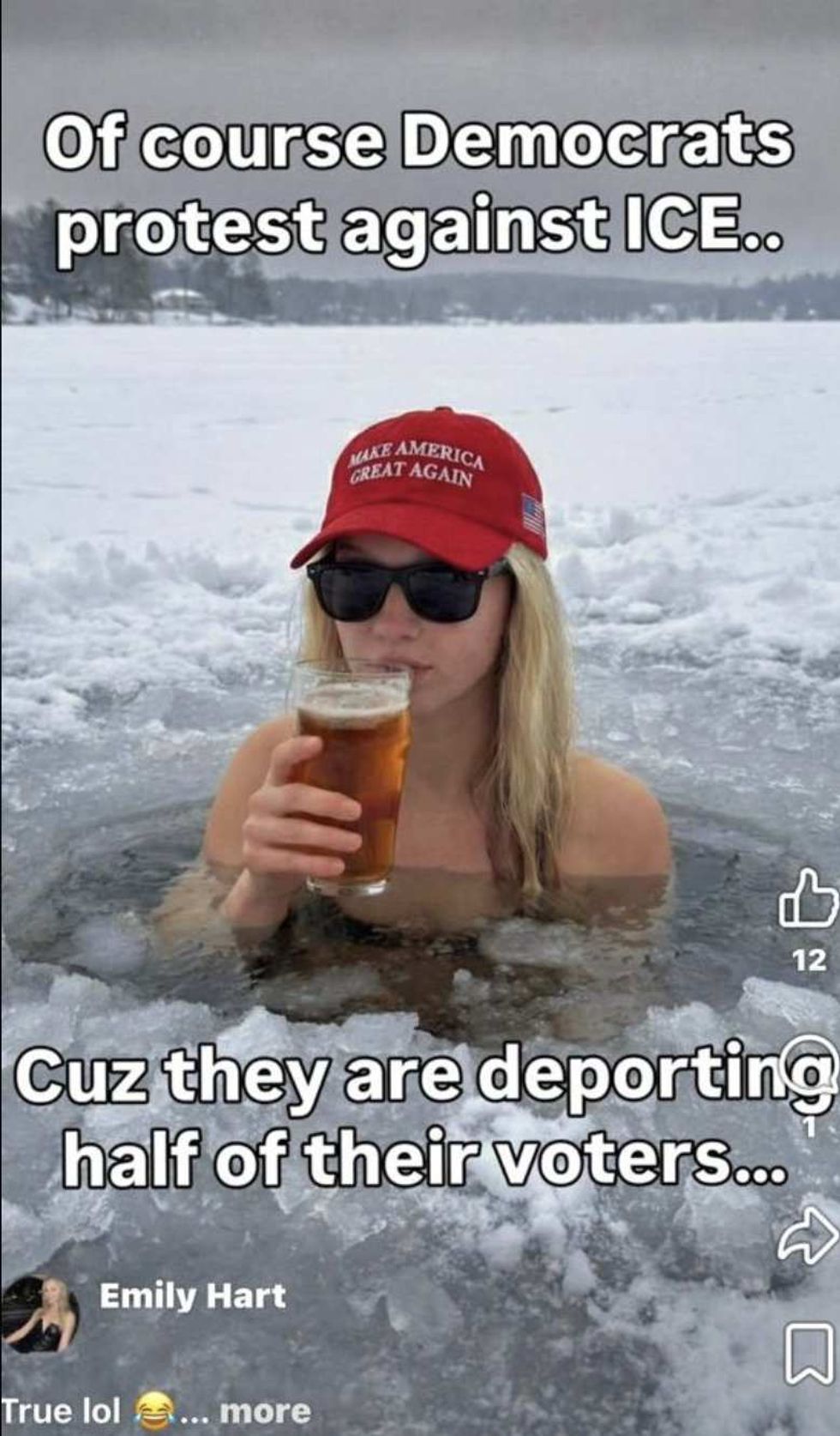 "Of course Democrats protest against ICE... Cuz they are deporting half of their voters."