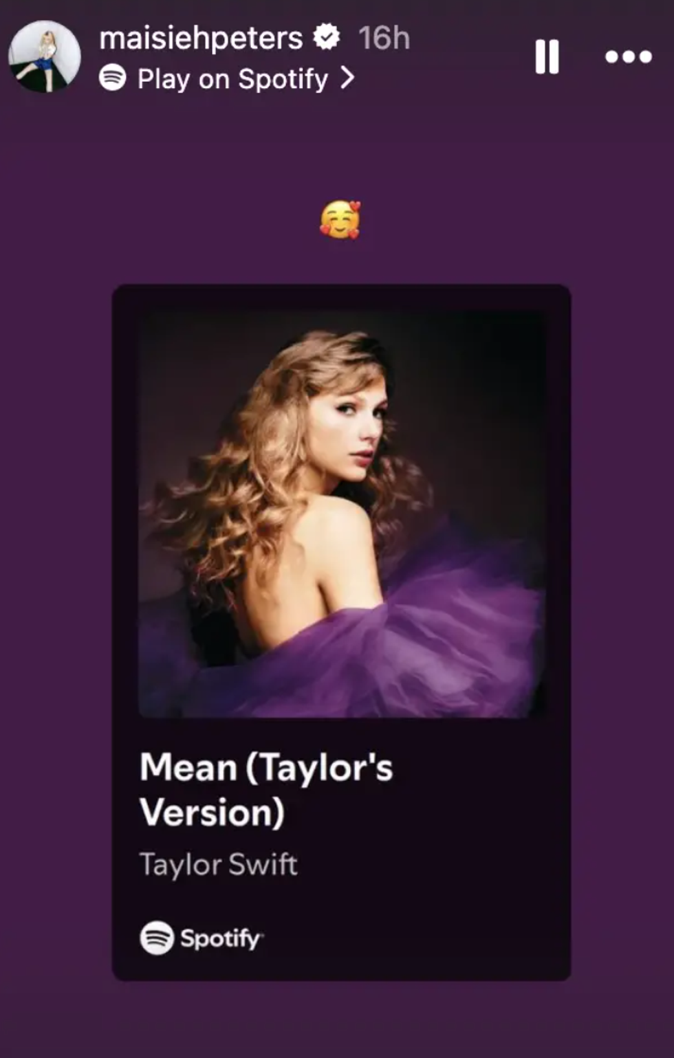 But Peters herself responded to the hate in her Instagram stories by simply sharing a screenshot of Swift's song "Mean."