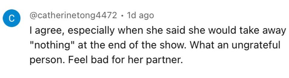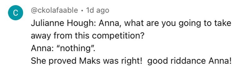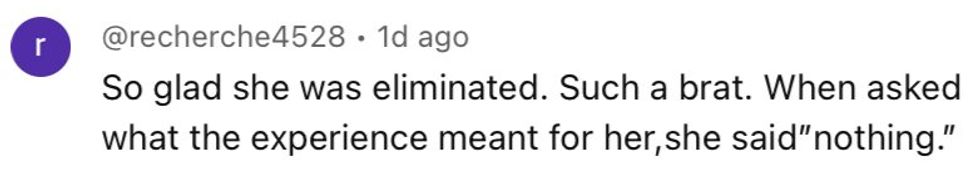“She wasn’t great. She was very kind of standoffish in a lot of things…She’s just a shitty dancer and a personality that’s not gonna really help her in this competition.”