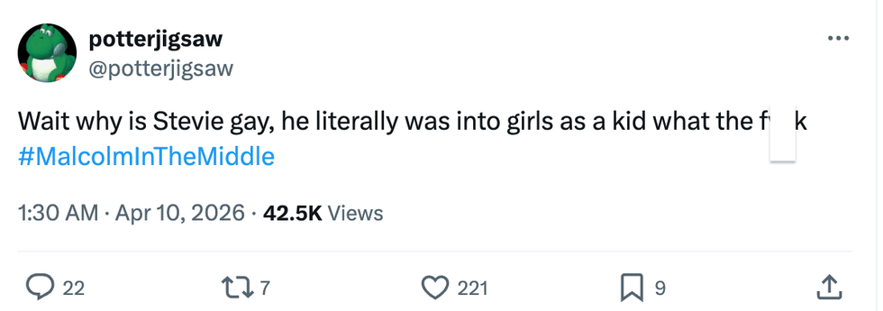 In Hulu and Disney+’s continuation of Malcolm in the Middle, fans catch up with Malcolm’s longtime friend Stevie Kenarban, who is now revealed to be in a relationship with a man, with whom he has adopted a son.
