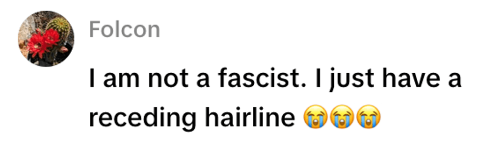 That is, until you get to the final stop: Full-on fascism with not a hair to be found on the head. Think psychopath-in-chief Stephen Miller. And, like, every Oakley sunglasses-wearing, flag-obsessed MAGA acolyte.