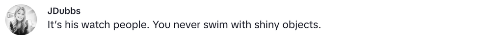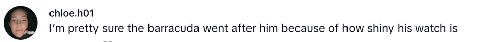Others noted that the man's watch was likely the reason behind the sudden barracuda approach.