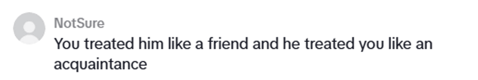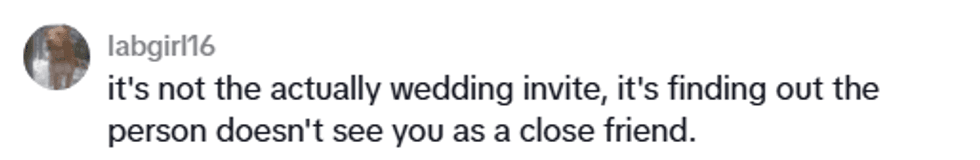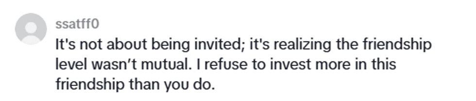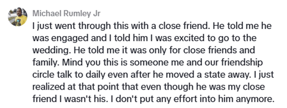 When the TikToker realized he had not made the cut, however, he decided he wasn't going to put effort into that friendship. If, after 10 years, that person didn't value his company enough to invite him to his wedding, what was the point?