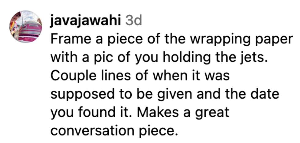 A follow-up video revealed what was underneath the dusty wrapping paper—a box containing Matchbox Thunder Jet model airplanes.