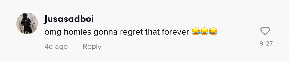 Viewers can also see a comment stitched over the video which read "He is defo fooling us."