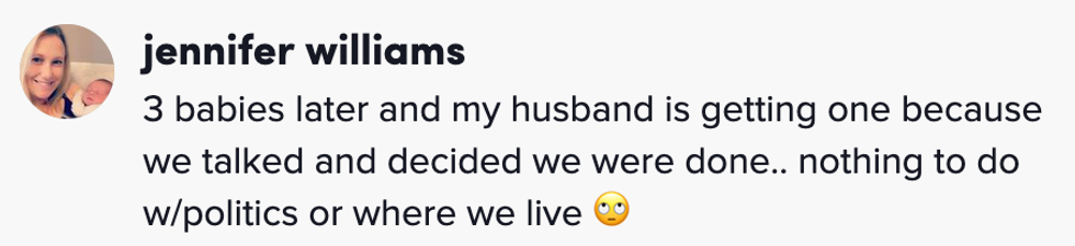 Some TikTokers suggested the procedure was a wise decision for couples whose families are complete, regardless of politics.