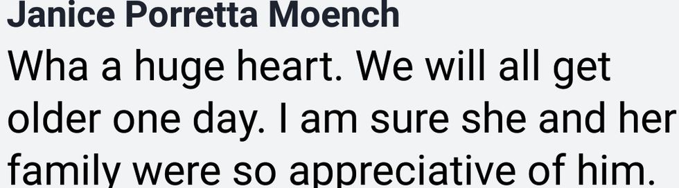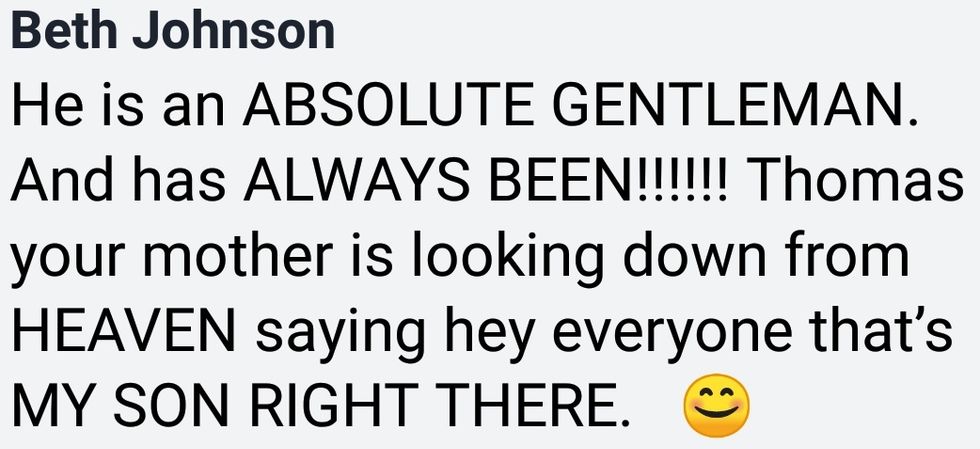 "I pointed them out to Thomas Harwell and said they may need help. Not only did he help get her to her seat, but she did not have the strength to come back up the stairs. So, he carried her!"