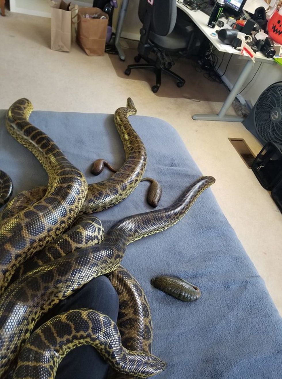 "One time, at one of these shows, I met a guy who had an anaconda. It was the first time I had seen one and I thought it was amazing, so I started researching them and from then on dreamed about having one of my own."