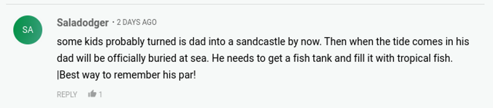 Stan Blade, age 39, absolutely did not follow that rule when he took his father's ashes to the beach in Essex, England in a Tesco shopping bag. The ashes were in a wooden box within the bag.