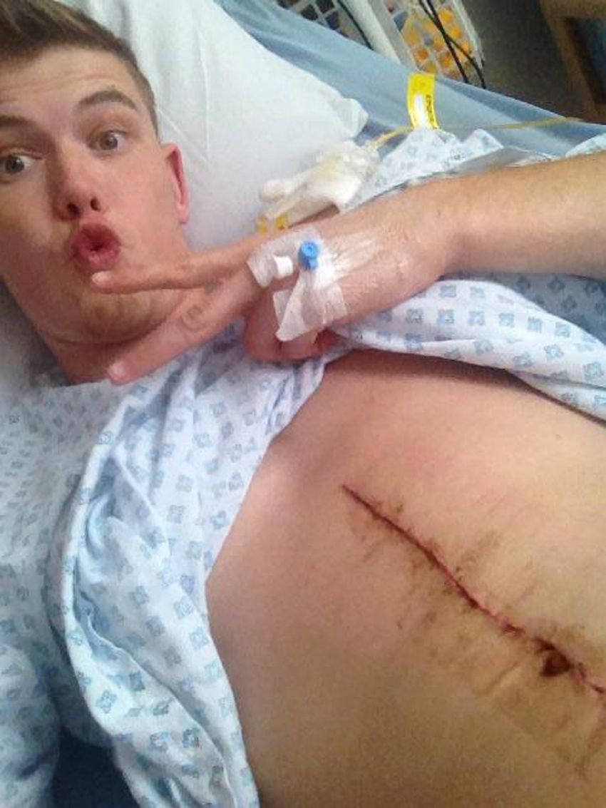 So, in April 2014, Gurney had a six hour procedure to remove the rest of the tumor on his abdomen.