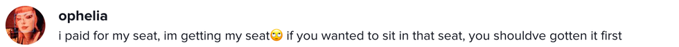 The woman tried to argue and even gestured to other available seats, but the TikToker stood firm, reminding her, "My place is 103."
