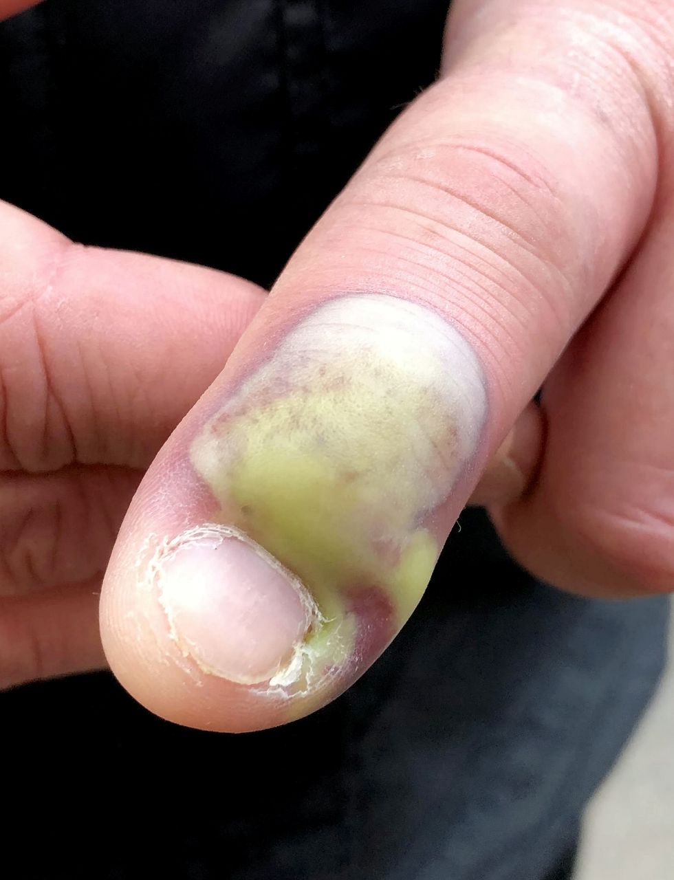 It swelled up and turned green with puss - after he'd been nibbling his nails.