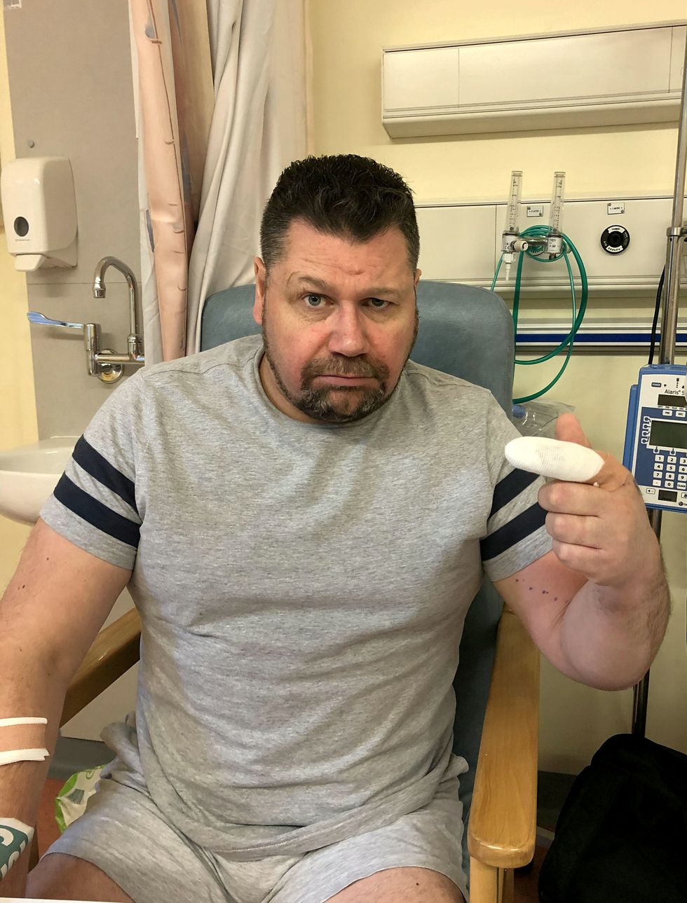 "I didn't think much of it but Karen seemed quite worried so we rushed into A&E. From there it was all quite a blur as a nurse came to look at it and rushed me into a room. A doctor then gave me antibiotics and sent me straight to Glasgow Royal Infirmary for surgery."