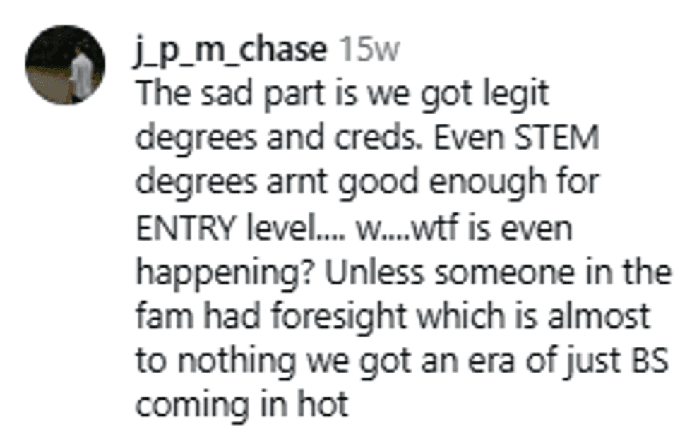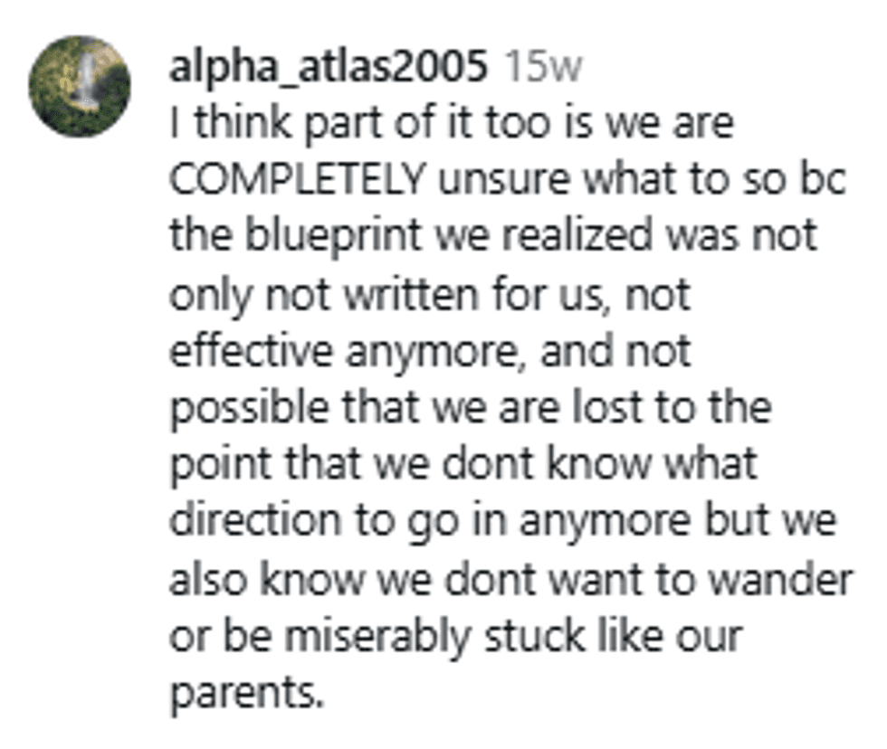 "We were told the blueprint to follow. We all followed it. And here we are, unfulfilled."