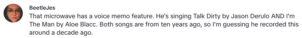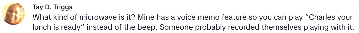 Others, however, enlightened the TikToker that some microwaves have a voice recording feature.