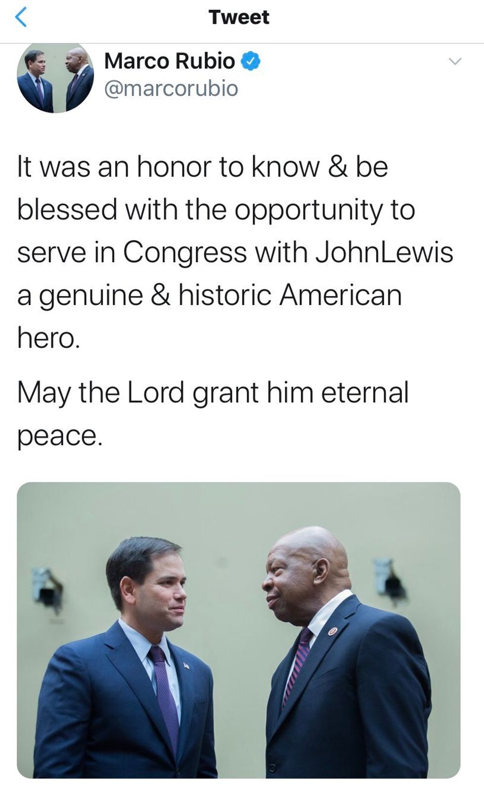 Rubio posted a different tweet, this time with the correct lawmaker, acknowledging that he posted a "wrong photo."