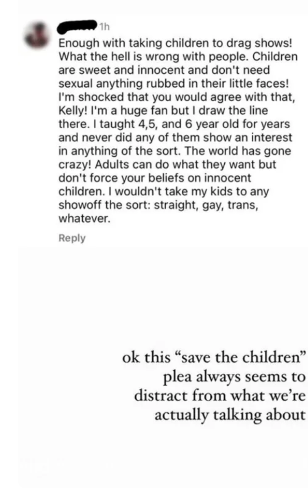 "Enough with taking children to drag shows!"