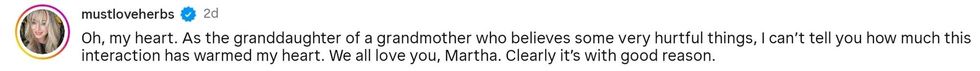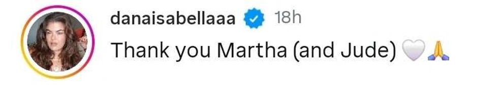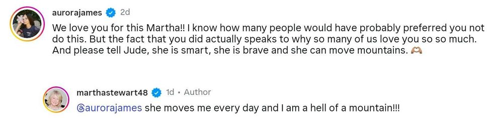 The Stewart matriarch took to Instagram Tuesday and shared a text message she received from granddaughter Jude on Saturday with the caption: