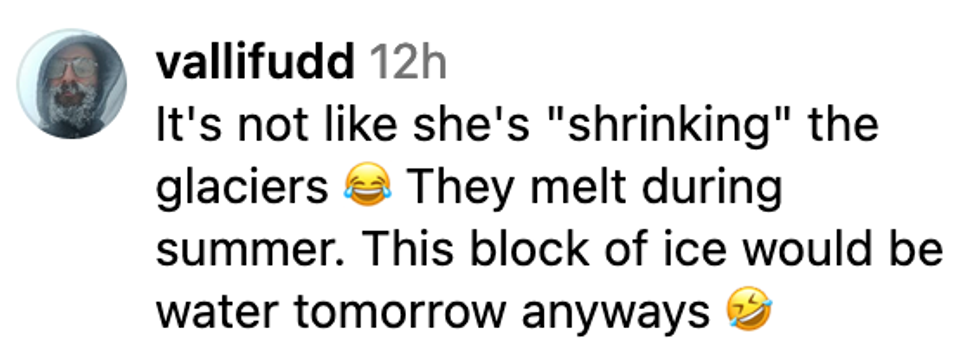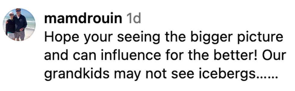 Stewart's traveling companion, Brian Kelly, also posted a photo from the excursion but addressed the issue of climate change while marveling at Earth's natural wonders.