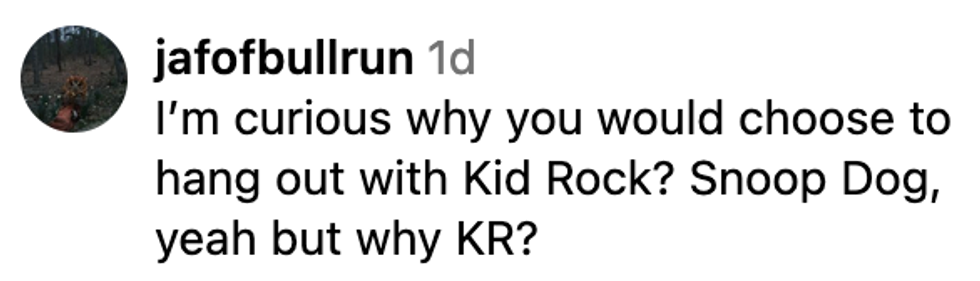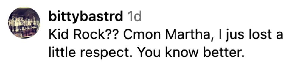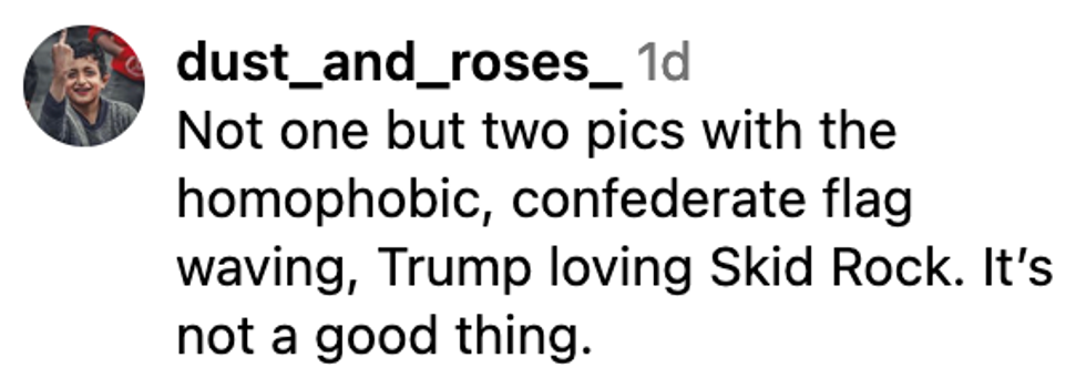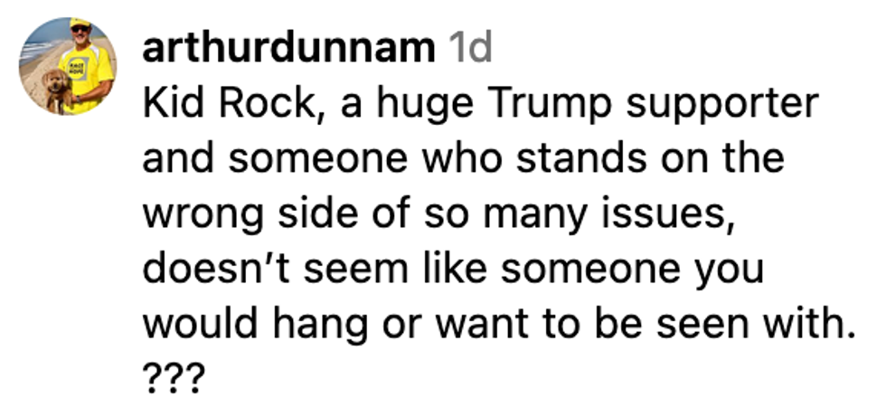Kid Rock has been criticized for using homophobic slurs and Confederate flags in his stage shows, along with his outspoken MAGA views, and several Instagram users called these incidents out in their angry comments directed at Stewart.
