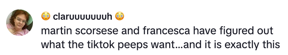 Scorsese's daughter Francesca, also a filmmaker and an actress, allowed him to take over her TikTok for the occasion of his interview.