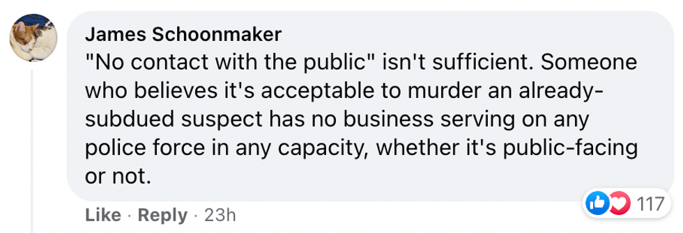 "The officer involved has been transferred to an assignment that has no contact with the public. There is going to be an independent investigator from outside the agency assigned to this case."