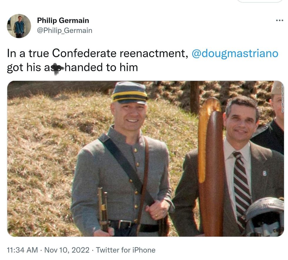Republican Doug Mastriano—a state Senator who was the GOP's candidate in Pennsylvania's gubernatorial election—was dragged after he boasted on air about his "big victory" just as his defeat was announced.