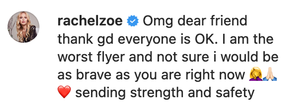 She assured followers that she and her A-lister hubs were safe despite the horrific airborne experience.