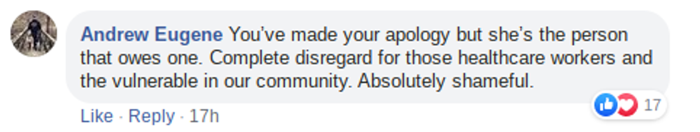 "She now faces the same consequences for her ill-advised decision as the other individuals who chose to violate the "Stay At Home" order during this incident."