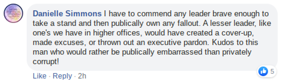 "I was also made aware that my wife was in attendance at this prohibited social gathering. I instructed the Police Chief to treat her as he would any citizen violating the 'Stay At Home' order and to ensure that she received no special treatment."