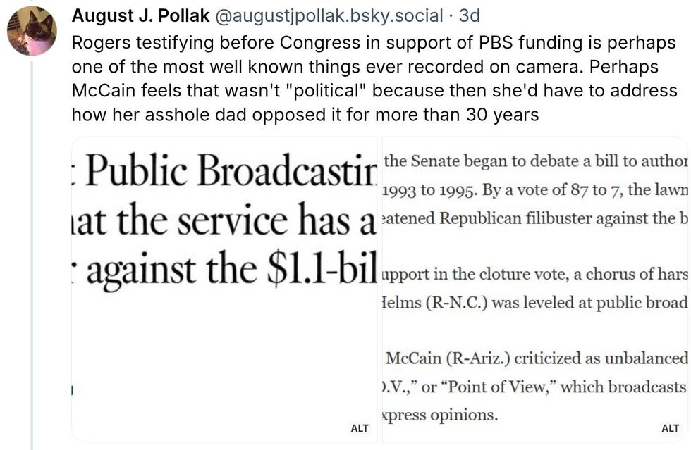 But every now and then she resurfaces to try to recapture the attention she once had. Her most recent attempt was on X with a vastly ill-informed hot take on public television icon Fred Rogers.