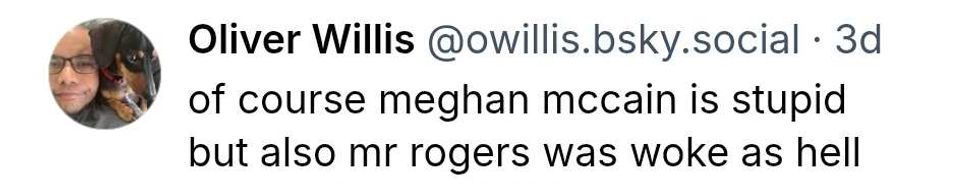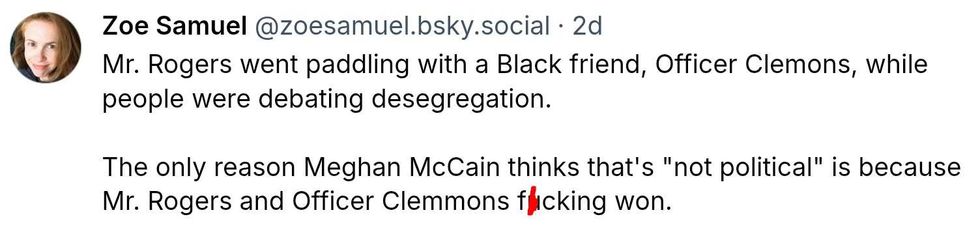 "Wanna know one of the best things about Mr. Rogers growing up? I never knew anything about his political opinions. He just entertained kids. That's it."