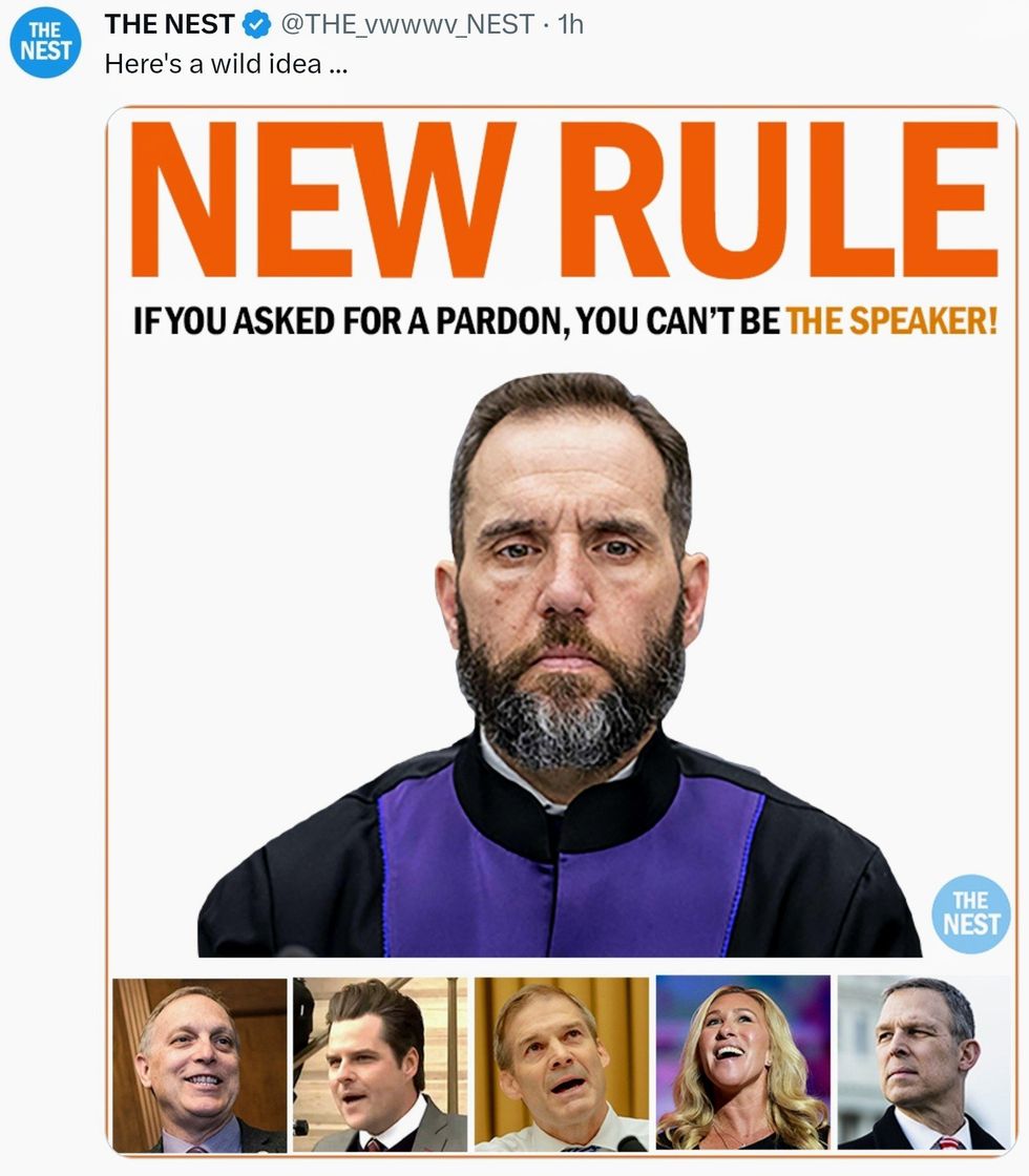 @SpeakerMcCarthy @Jim_Jordan Great. Again.— Luke Zaleski (@Luke Zaleski) 1697548980