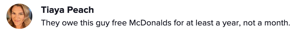 He was rewarded with $200 and free McDonald's for a month. A poor substitute for bags full of cash, but still more than he had when he entered the drive-thru line.