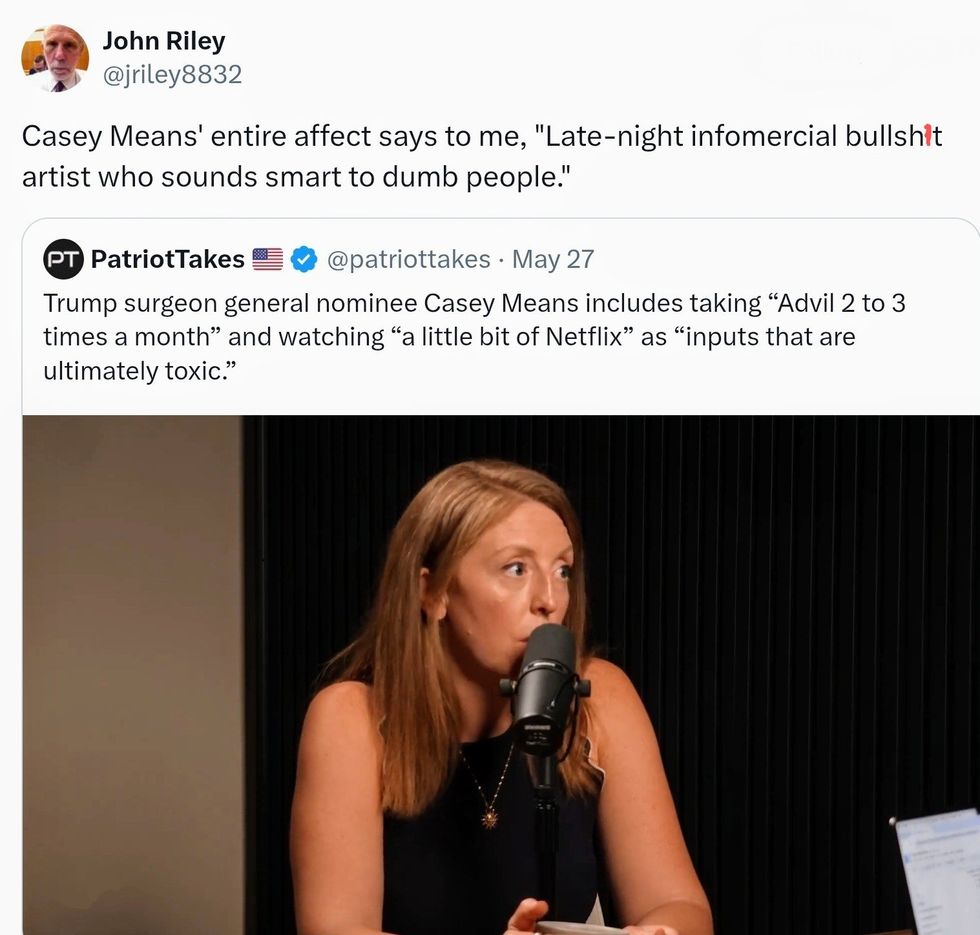 Now that MAGA Republican President Donald Trump has tapped Means—an unlicensed person unable to legally practice medicine, who tells her followers to reject modern medicine, pharmaceuticals, and vaccines—for surgeon general, her social media and online presence is being scrutinized.