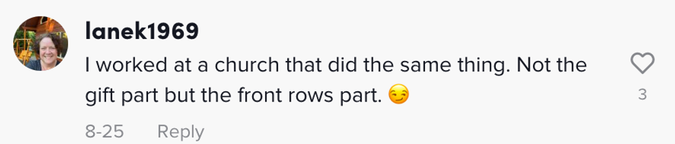 She revealed that the three volunteers who weren't allowed to be in the front rows for the regular church broadcast were the recipients of the gift that year.