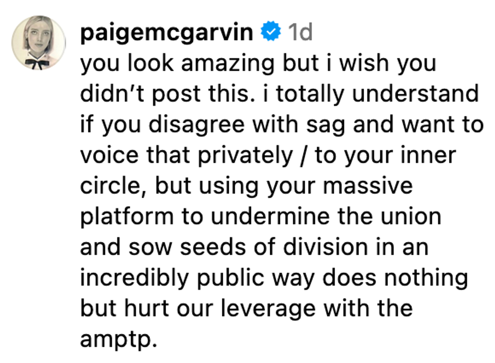 Fox's defiance was further evidenced when she tagged the union in the comments, writing simply: @sagaftra.