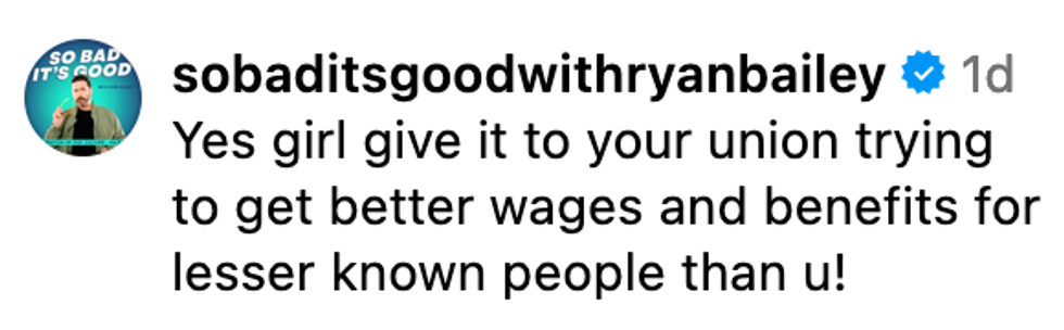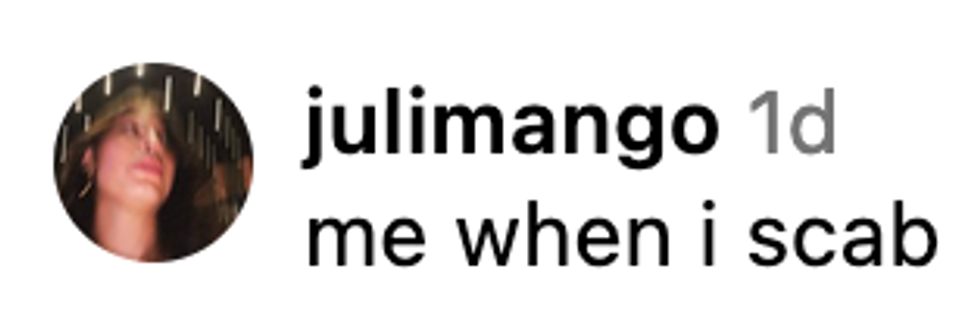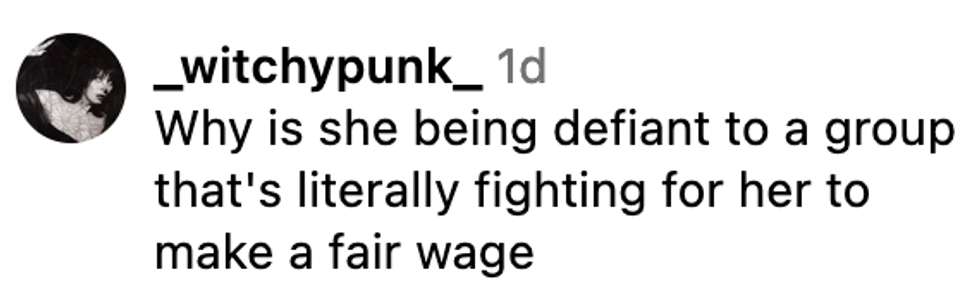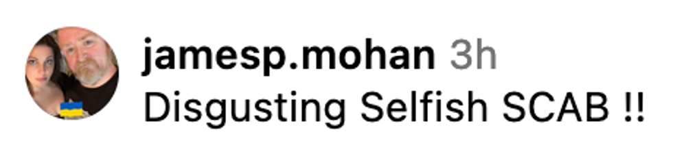 More criticism followed on her Instagram post, with many comments calling her a "scab."