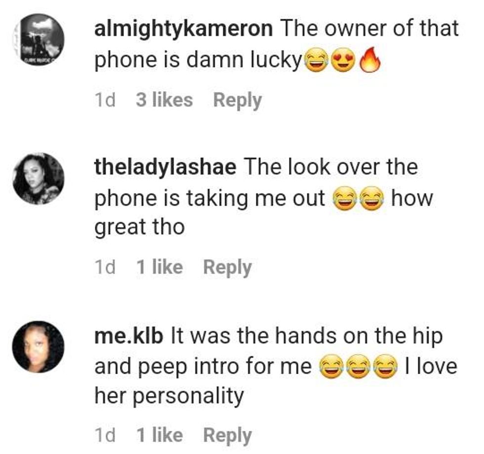 The rapper, actress and TV host then stood over the phone as "Savage" played in the background.