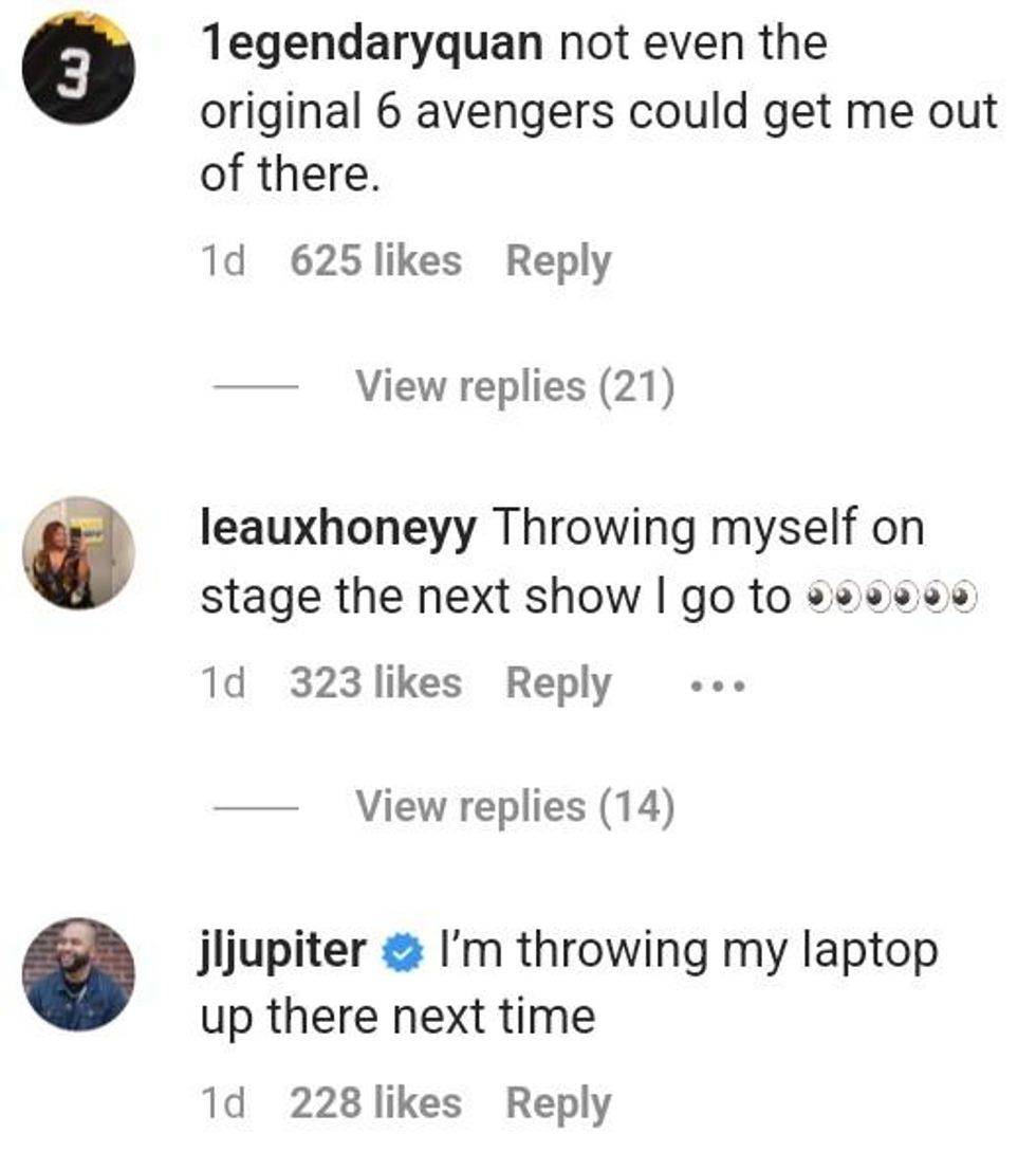 "Somebody threw their phne on stage already recording 😂😂😂 I said welp 🤷🏽♀️.”