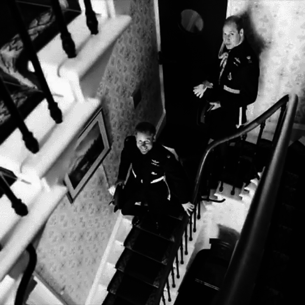The slideshow ends with gorgeous color photos of the newlyweds as they exit the chapel.