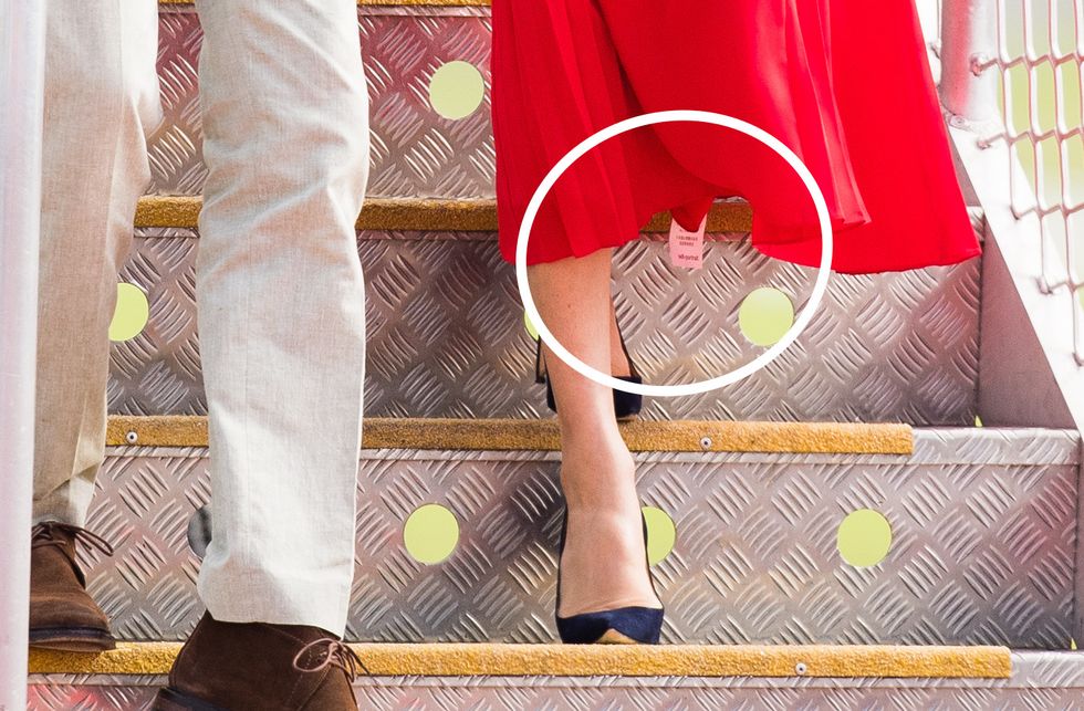 But even the Duchess of Sussex is human, and the noticeable price tag left on her Self Portrait dress is totally forgivable.