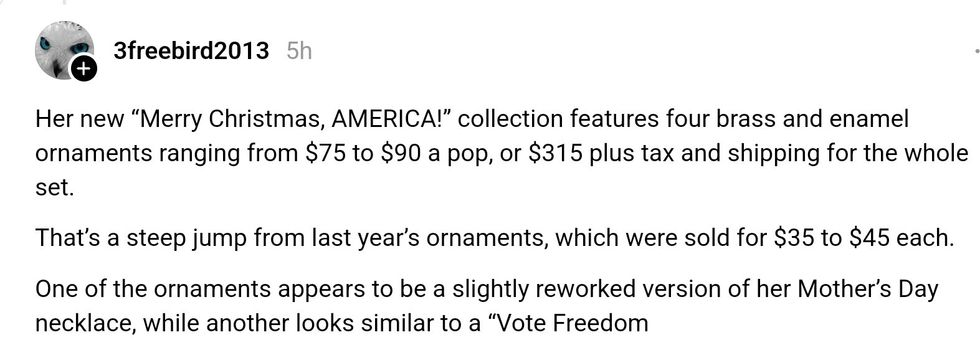 Others pointed out the 100%+ price increase on the ornaments compared to last year despite the GOP's rhetoric about the economy under President Biden and their purported sympathy for the working class.