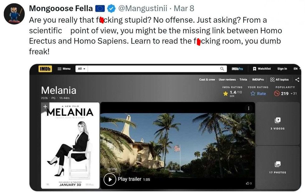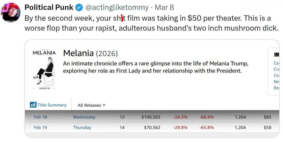 "As planned, my new film MELANIA is launching on Prime following its record-breaking theatrical run."