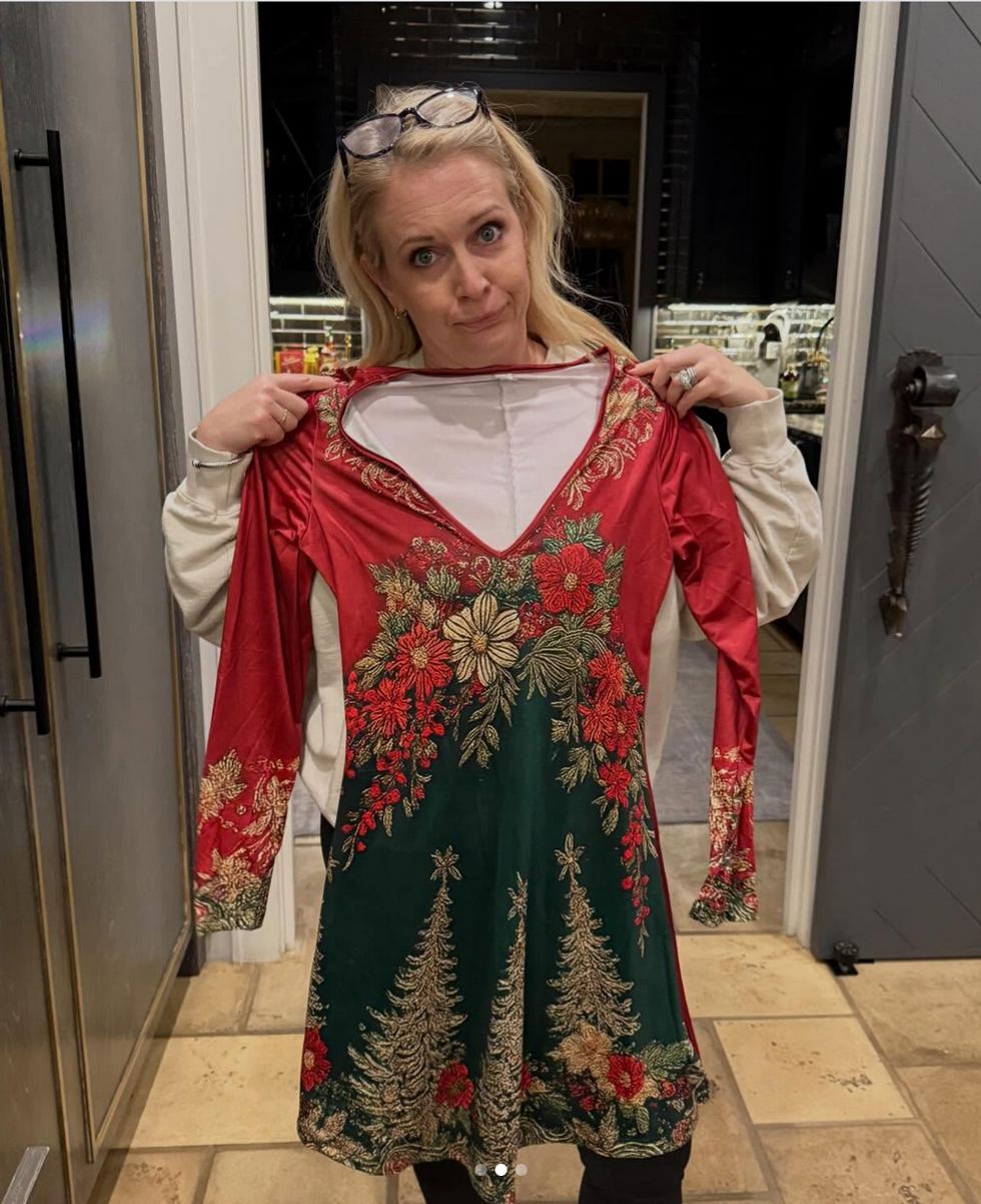 In an Instagram post, the Clarissa Explains It All star shared a series of photos showing the Christmas dress she thought she purchased, an ornate, embroidered red and green dress with a scooping neckline and full skirt.