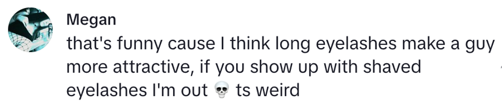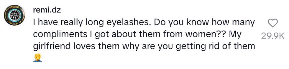 "Eyelashes are not their [sic] to show masculine or femininity, they are needed to protect your eyes!"