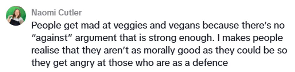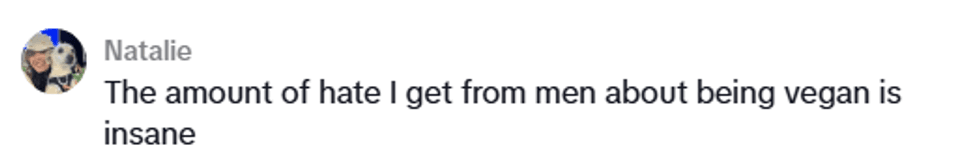 "The way that people view meat as a whole, especially the idea of not getting enough protein, that really reminds me of toxic masculinity. Whenever I go on dates with men and they find out I'm veggie, they'll be so shocked at where I was getting my protein from."