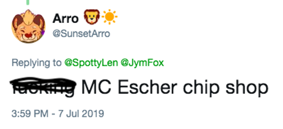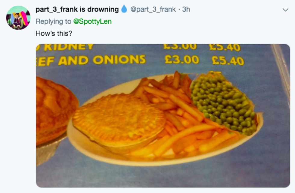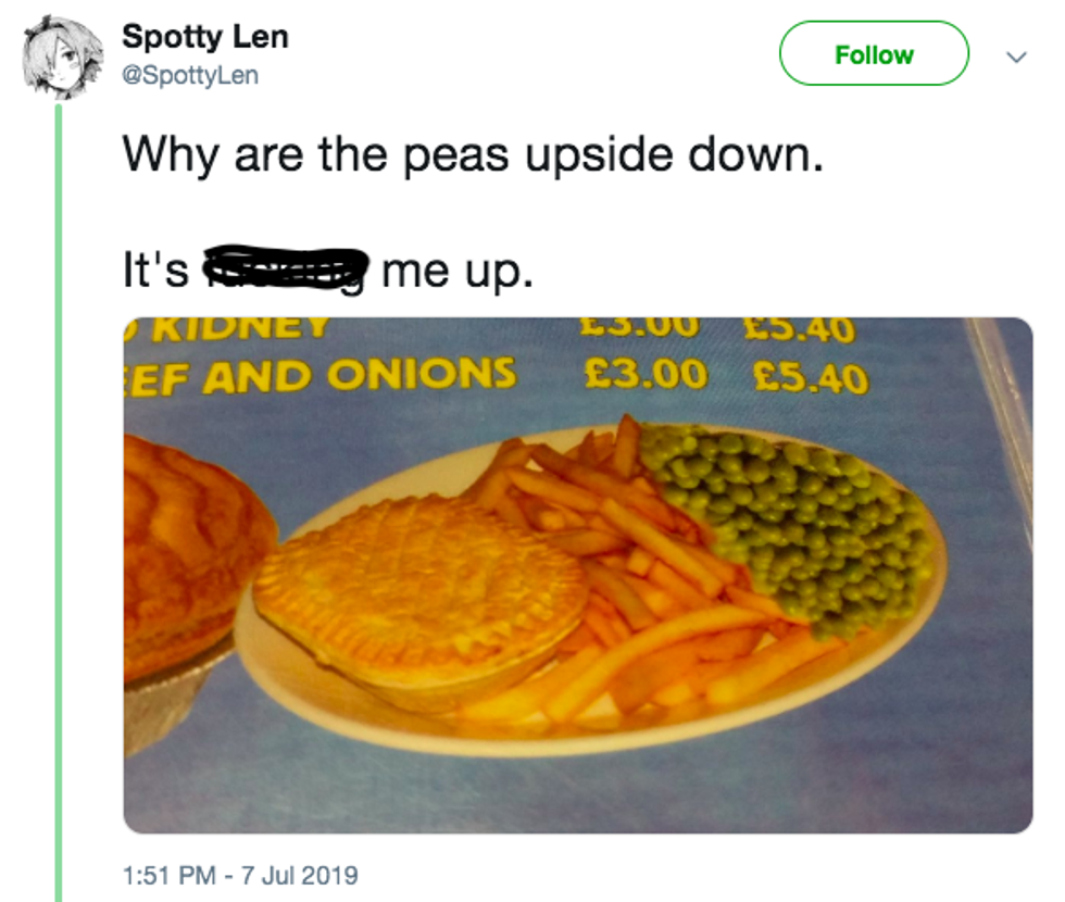 Twitter user Spotty Len, from Toulouse, France encountered an image like that on a British chip house menu.
